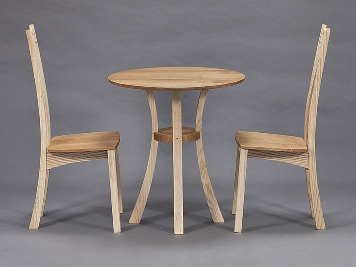 Refectory and cluster pedestal formats and occasionally simpler pieces complement the chair design. The refectory design is a contemporary take on a vernacular theme. All designs have been made both in static and extending versions.